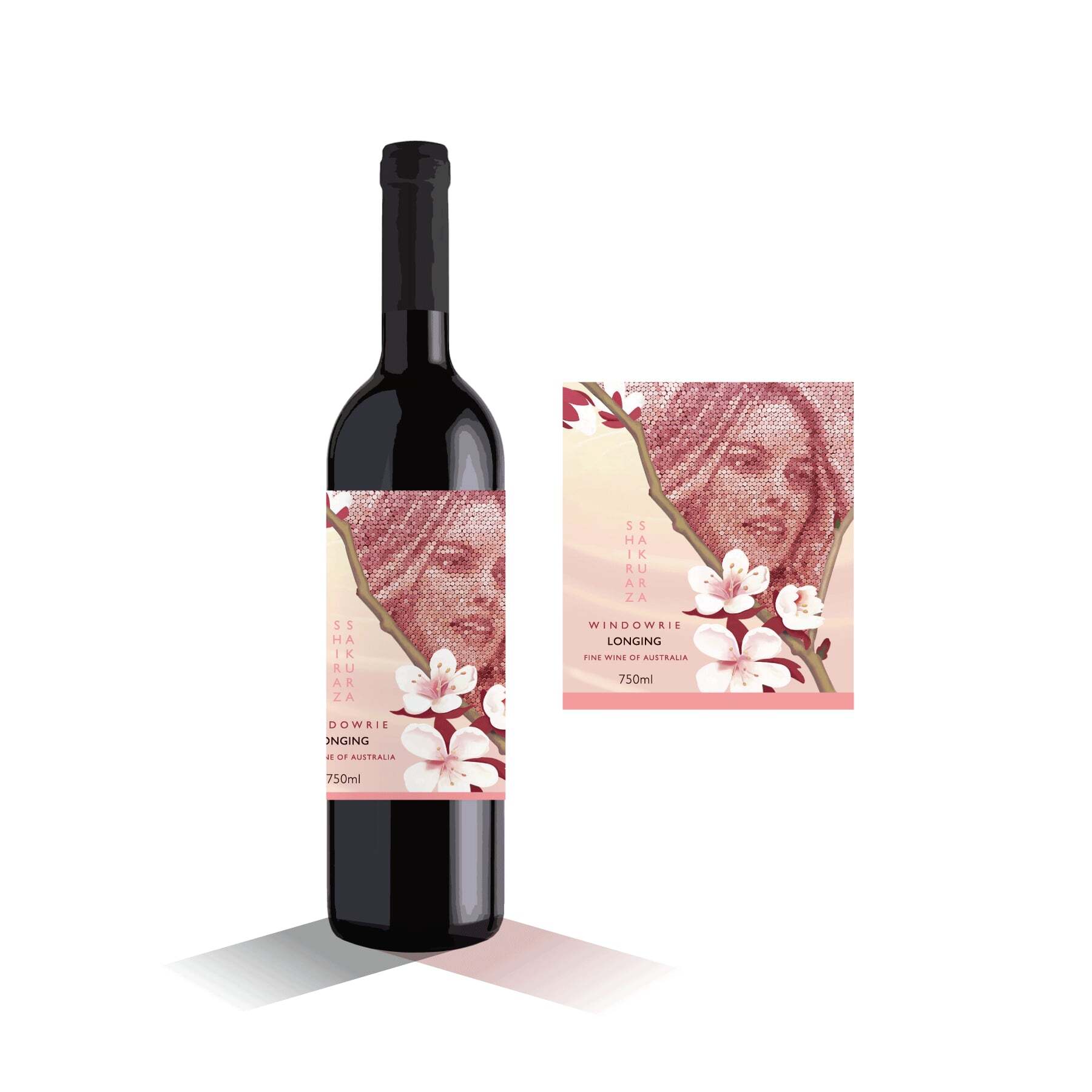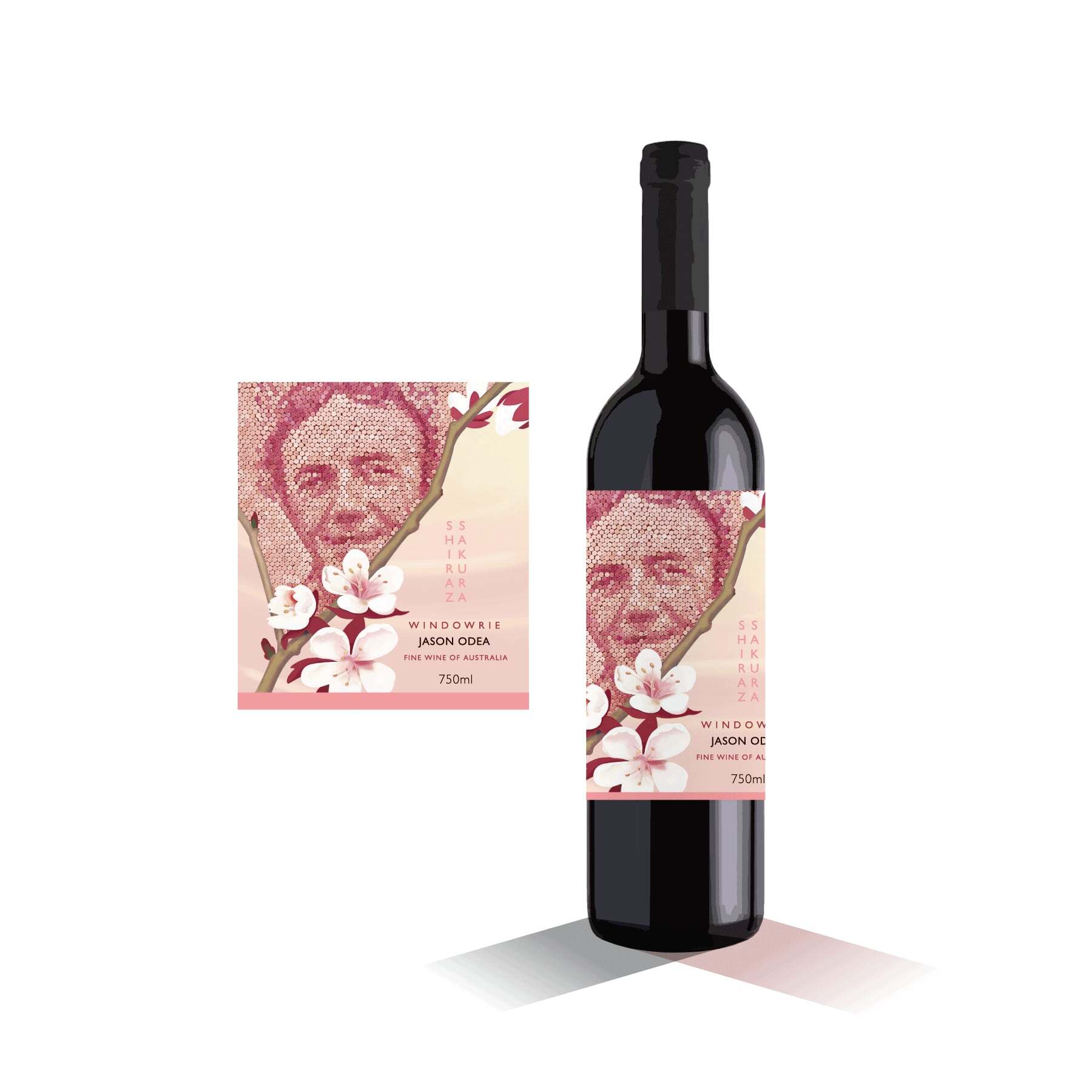 ※桜のワインラベルに重ねたコルクアート肖像画は、ワイン生産者Jasonさんとワイナリーチームの憧れの女性です。中身は同一のワインです